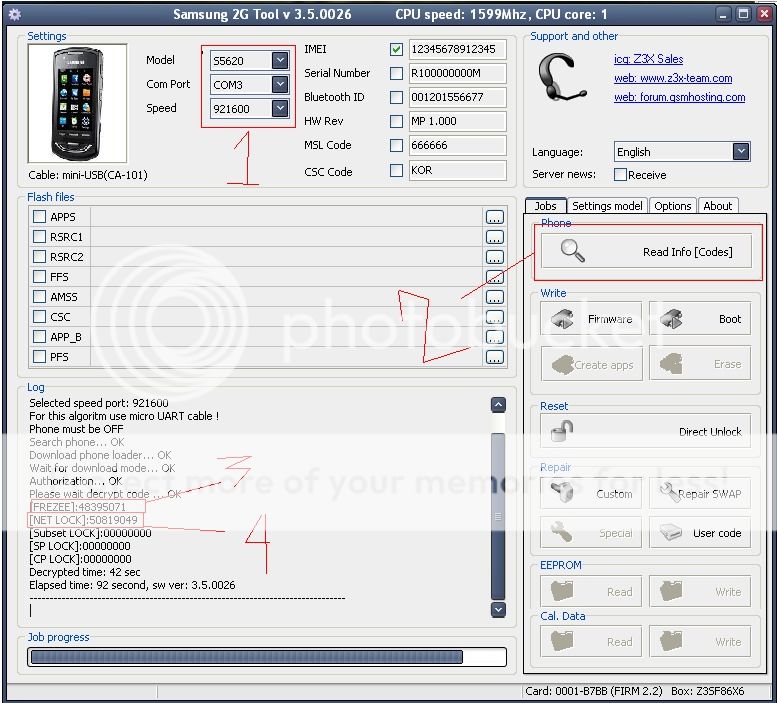 SAMSUNG s5620 unlock done by z3x